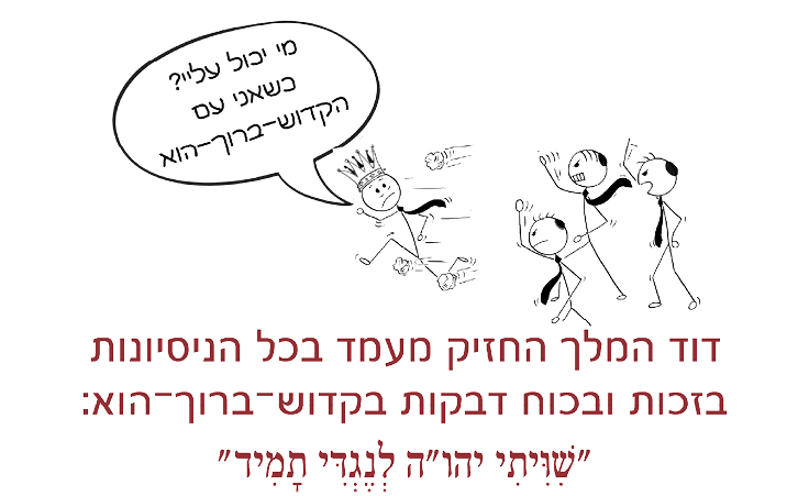 והחזיק מעמד בכל הניסיונות בזכות ובכוח שהיה מתבונן במעשי השם, בגדולת השם, בשמיים ובארץ, מה ברא הקדוש־ברוך־הוא. ועל־ידי זה השיג דבקות בקדוש־ברוך־הוא: "שִׁוִּיתִי יהו"ה לְנֶגְדִּי תָמִיד" (תהילים טז, ח).
