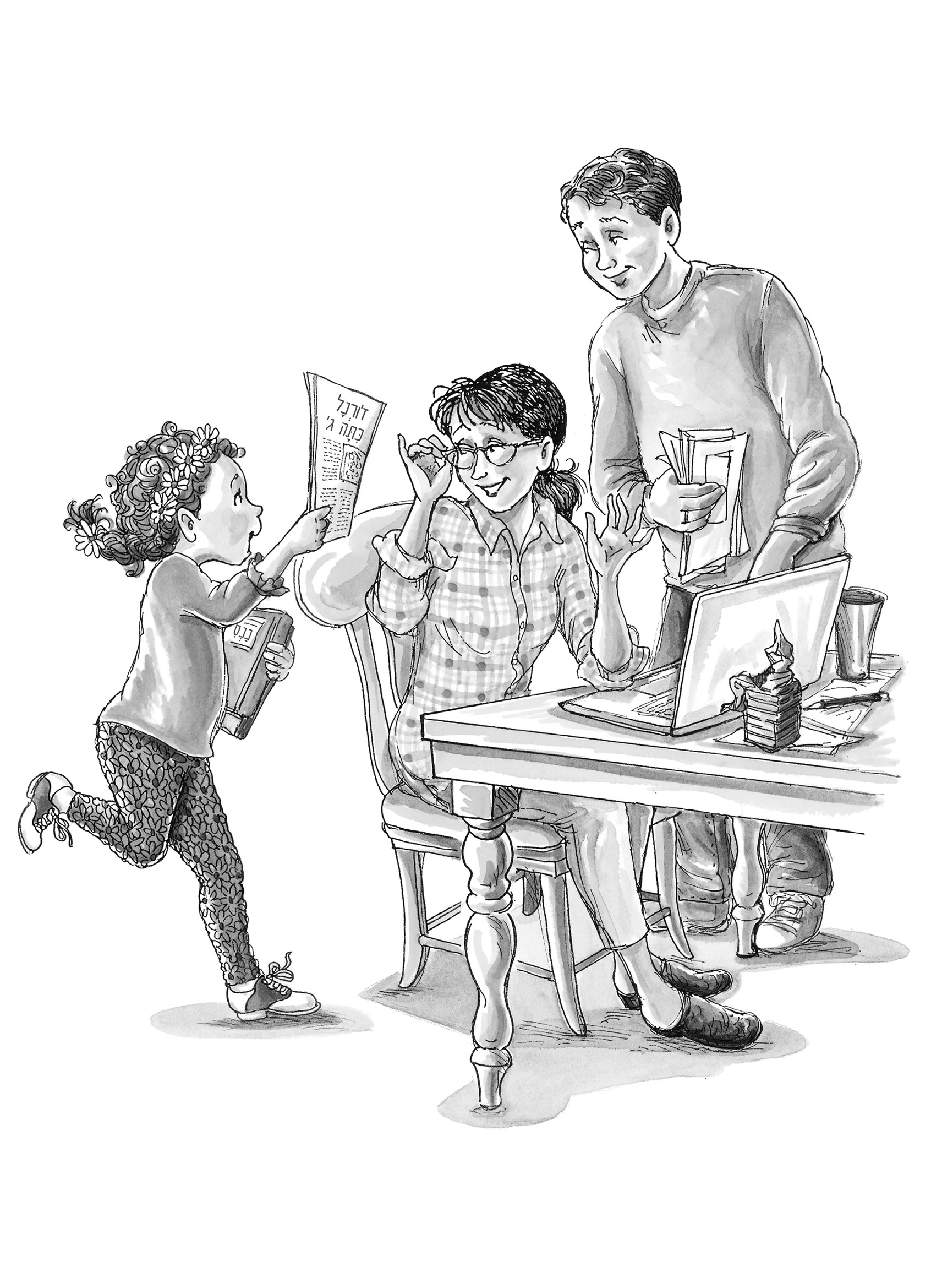 "הַזּ'וּרְנָל! הוּא הִגִּיעַ!" צָעֲקוּ נַנְסִי וּבְּרִי כְּשֶׁהֵן מְזַנְּקוֹת מֵהָאוֹפַנַּיִם. שְׁתֵּיהֶן נוֹפְפוּ בַּמַּהֲדוּרָה הַחֲדָשָׁה שֶׁל "ז'וּרְנָל כִּתָּה ג'".