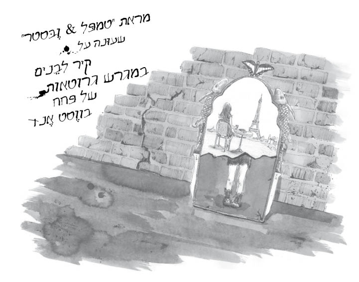 מראת הקסמים שלי היתה מונחת על שולחן פינג פונג מעופש ליד קרטון בננות מלא בובות של תינוקות נטולות גפיים ועיניים. למראה שלי היתה מסגרת בצבע זהב מאט, עם קשת בראשה כמו הכניסה לחדר שינה של נסיכת עֲרָב. המשפחה בלַיים 36 זרקה אותה מפני שהיה בה סדק אלכסוני באמצע. מאחור עדיין היתה מדבקה: טמפל & ובסטר: מראת קשת "אמינה", $299. בהתחלה זה נראה לי קצת יותר מדי, להוציא שלושה ירוקים על משהו להסתכל בו כשמסרקים את הבלורית, אבל עכשיו, בעיצומו של אביב פריחת היקרנדות של השנה השבע־עשרה לקיומי עלי אדמות, המראָה הזו, שאני לוטשת בה עיניים עם אור ראשון — האור הטוב ביותר ללטוש עיניים במראת קסמים — היא הדבר השני הכי יקר בחיי.