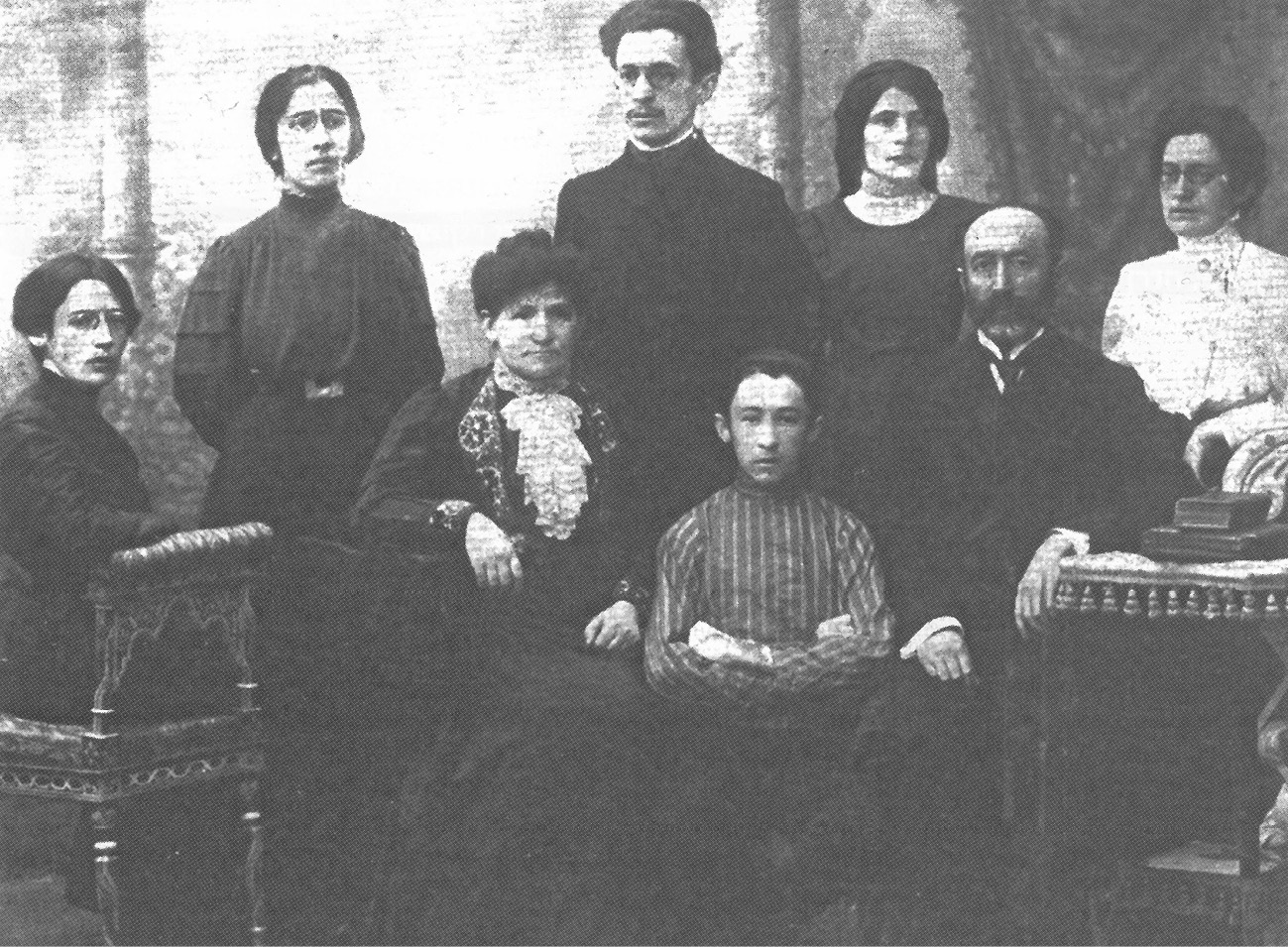משפחת רובשוב בסטויבץ. יושבים מימין לשמאל: האב יהודה לייב, הבן הצעיר אברהם, האם שרה, הבת רודה. עומדים: הבת מניה, הבת ויטקה, הבן זלמן והבת קטיה