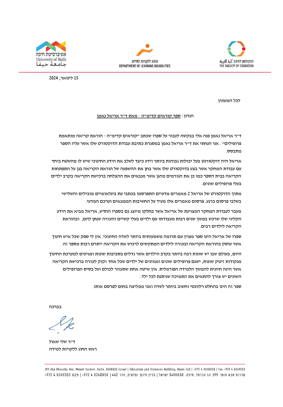 כמו כן, יש בספר התייחסות לגילאי הגן ולזיהוי ילדים מתקשים בגילאים אלה כך שגננות בחינוך הרגיל ובחינוך המיוחד יוכלו להעשיר את ידיעותיהן בכל הקשור להתפתחות הקריאה.