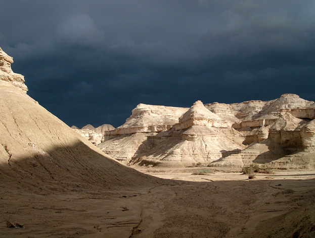 ערב לפני הרכיבה טילפנתי לרפי והקראתי לו מאתר השירות המטאורולוגי את הצפוי לנו למחרת בדרום מדבר יהודה: ״גשם כבד, סופות רעמים, חשש לשיטפונות, נחילי ארבה ענקיים בכל האזור.״ רפי הרגיע אותי ואמר: ״דני הביולוג, שרוכב איתנו מחר, עשה פעם מחקר על זאבים בנגב, ולדעתו לא יהיה מחר גשם.״ מעודד מהמידע המדעי המוצק הזה התעוררתי למחרת בארבע בבוקר, הכנסתי את האופניים למכונית והתחלתי לנסוע אל נקודת המפגש בגשם שוטף. לאחר כמה דקות שברתי את דממת האלחוט והודעתי לרפי בקול נכאים שאני חוזר לַפּוּךְ. רפי גער בי קשות והזכיר לי שדני הביולוג, שחי עם להקות זאבים בערבה, אמר שלא יהיה היום גשם. כדי לא לאבד את מעט המוניטין שהצלחתי לצבור בקבוצת הרוכבים שלנו, ומתוך הבנה שברמה התיאורטית בעצם לא יורד גשם, העברתי להילוך אמפיבי והמשכתי לפלס את דרכי אל נקודת הכינוס במבול כבד.