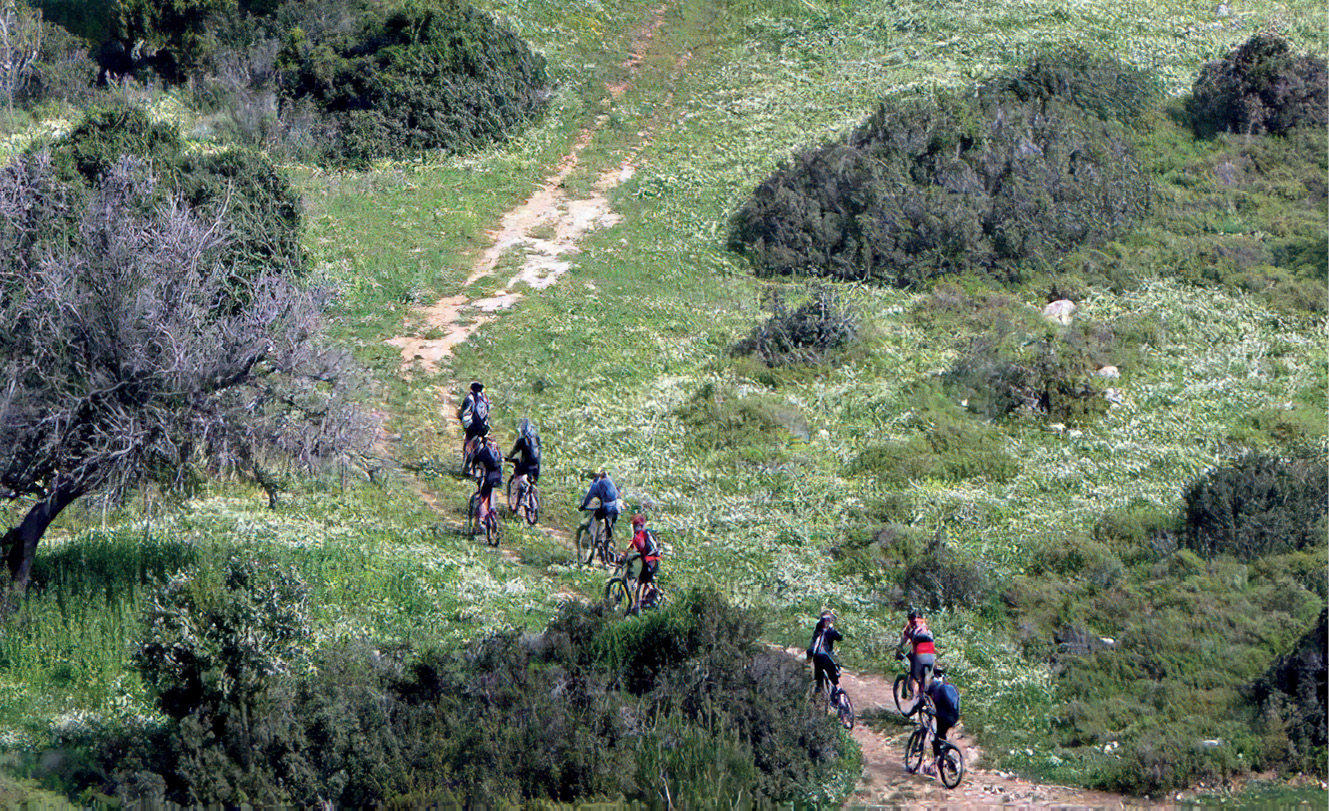 לאחר ריקון תרמילי הגב על גדר אבן עתיקה מתחת עץ תאנה נערם לפנינו מזנון מפואר של פירות, כריכים, וחטיפים למיניהם. בעצם, סתם אוכל; אבל, אחרי שעתיים של רכיבה מאומצת, פרוסת לחם עם ריבה היא מעדן מלכים שהגוף בולס ומעכל בשקיקה — אפשר להרגיש את הקלוריות טסות לשרירים ולמוח ונותנות כוח להמשיך. מנוחה קצרה, ואנחנו חזרה על האופניים. חוצים את ערוץ הכסלון ומטפסים על הגדה הצפונית של הנחל בסינגל כיפי שמתפתל ומעפיל בין חורבות, משוכות צבר, ועצים עתיקים. ממשיכים לטפס דרך שואבה עד הר כרמילה, ומשם טסים על דרך הנוף הצפונית חזרה לשפלה. מדלגים באושר מעל מהמורות, שלוליות וענפים כרותים, ועוצרים מדי פעם לשאוף אוויר ולהסניף את הנוף החורפי שמבצבץ במלוא הדרו דרך מסך של עצי אורן, שקדיות, שיזף וקטלב. נוחתים במסילת ציון עם חיוך רחב והקלה על כך שאף רוכב לא עף בירידה המטורפת. חוזרים לחיים הרגילים ואל שבוע נוסף של המתנה מתוחה להודעה הבאה של רפי.