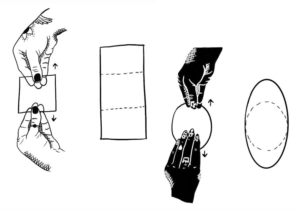 אבל כרגע אנחנו עוסקים בטופולוגיה, ובטופולוגיה מתעלמים מפרטים קטנים וחסרי חשיבות, כמו פינות חדות שאפשר לעגל. אנחנו מסתכלים מעבר להבדלים השטחיים, כגון אורכים וזוויות, או קצוות ישרים לעומת קצוות מעוגלים או מפותלים. אנחנו מתמקדים רק בצורה היסודית, הגרעינית, במאפיינים הבסיסיים שעומדים ביסוד הצורה. בטופולוגיה, כשמסתכלים על ריבוע או על מעגל, רואים רק לולאה סגורה. כל דבר אחר נקבע לפי הדרך שבה מותחים או מכווצים את הצורה בכל רגע נתון.