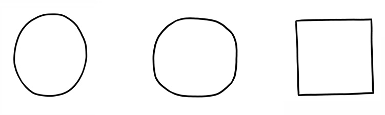 לפי הכלל הזה, מלבן וריבוע הם אותה צורה, וכך גם מעגל ואליפסה.