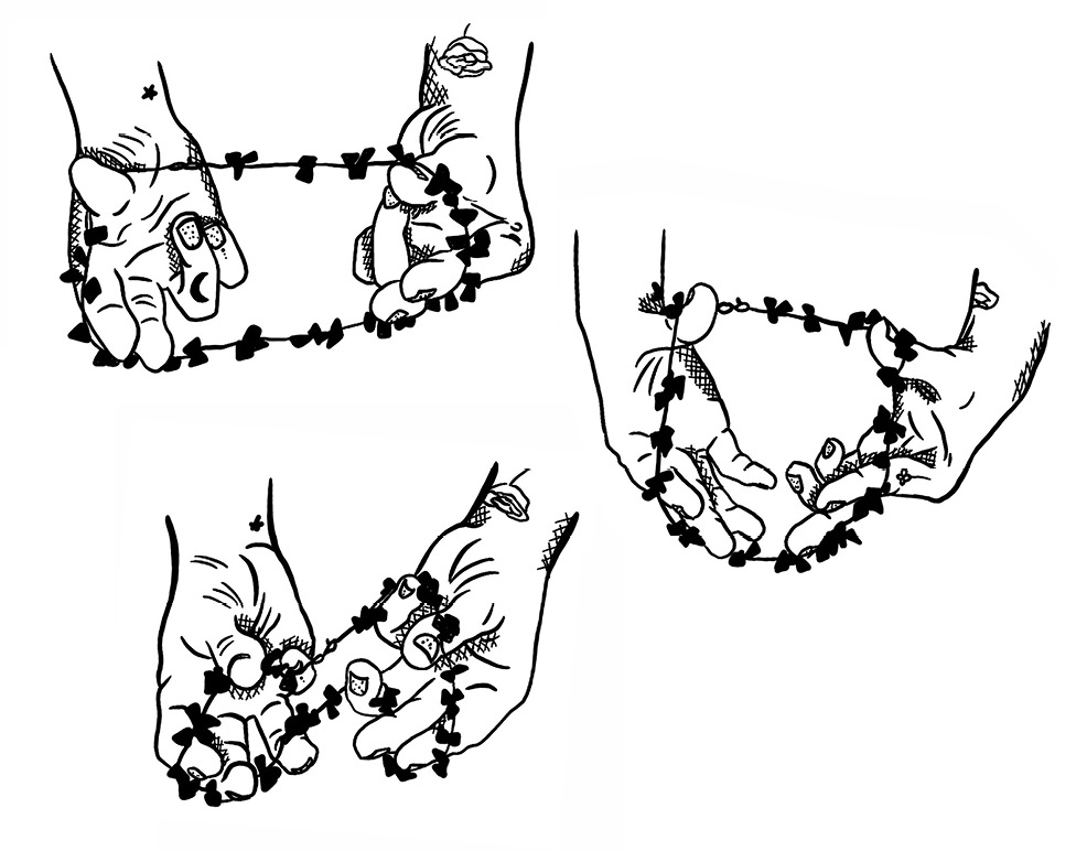 באופן דומה, אפשר לשאול, "איזו צורה יש למחרוזת?" היא בצורת ריבוע אם מחזיקים אותה בדרך מסוימת, ובצורת עיגול אם מחזיקים אותה בדרך אחרת. אבל בלי תלות באצבעות המחזיקות אותה, יש לה צורה מהותית, יסודית, שאינה משתנה לפי הנסיבות, ולא משנה אם כרגע היא בצורת ריבוע, מעגל, מתומן, לב, סהר, גוש חסר צורה או הֶפְּטָהֶקְטָהֶקְסָדֶקָגוֹן.