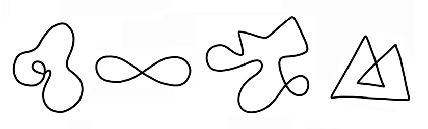 בשל סיבה דומה, גם צורת שמונה היא צורה נפרדת. אין בה קצוות, אבל יש בה נקודה מיוחדת שבה הקווים חוצים זה את זה וממנה יוצאות ארבע זרועות, ולא שתיים בלבד כמו בכל נקודה אחרת. גם מהצומת הזה אי אפשר להיפטר, ולא משנה כמה נמתח ונכווץ את הצורה.