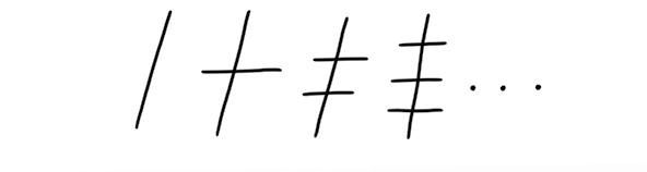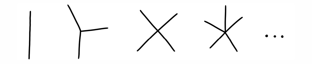 נסתכל במשפחת הצורות הזאת: אפשר ליצור את הצורה הבאה בקבוצה על ידי הוספת קו חוצה לצורה הקודמת.
