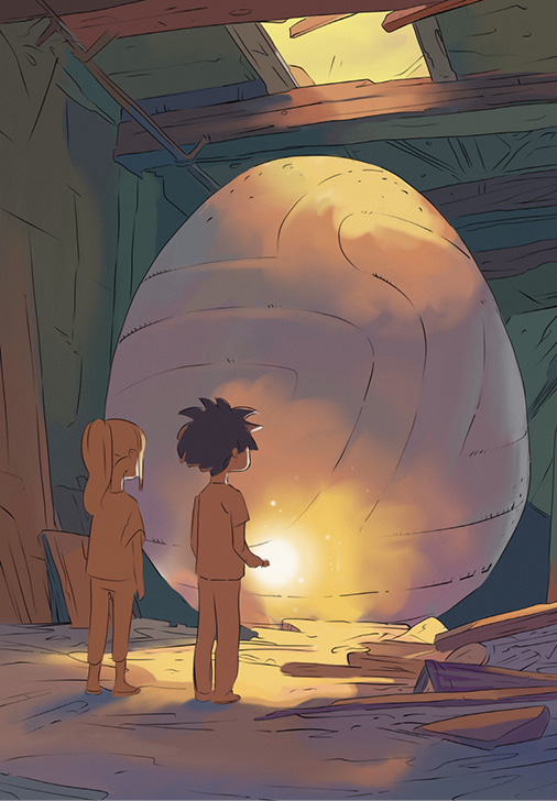 "אני לא..." היא התחילה להגיד, אבל באותו רגע הביצה המוזרה פשוט זינקה כלפי מעלה. הרעש הנורא שליווה אותה היה כנראה ריסוק של שרידי הרצפה בסלון של השקדים.